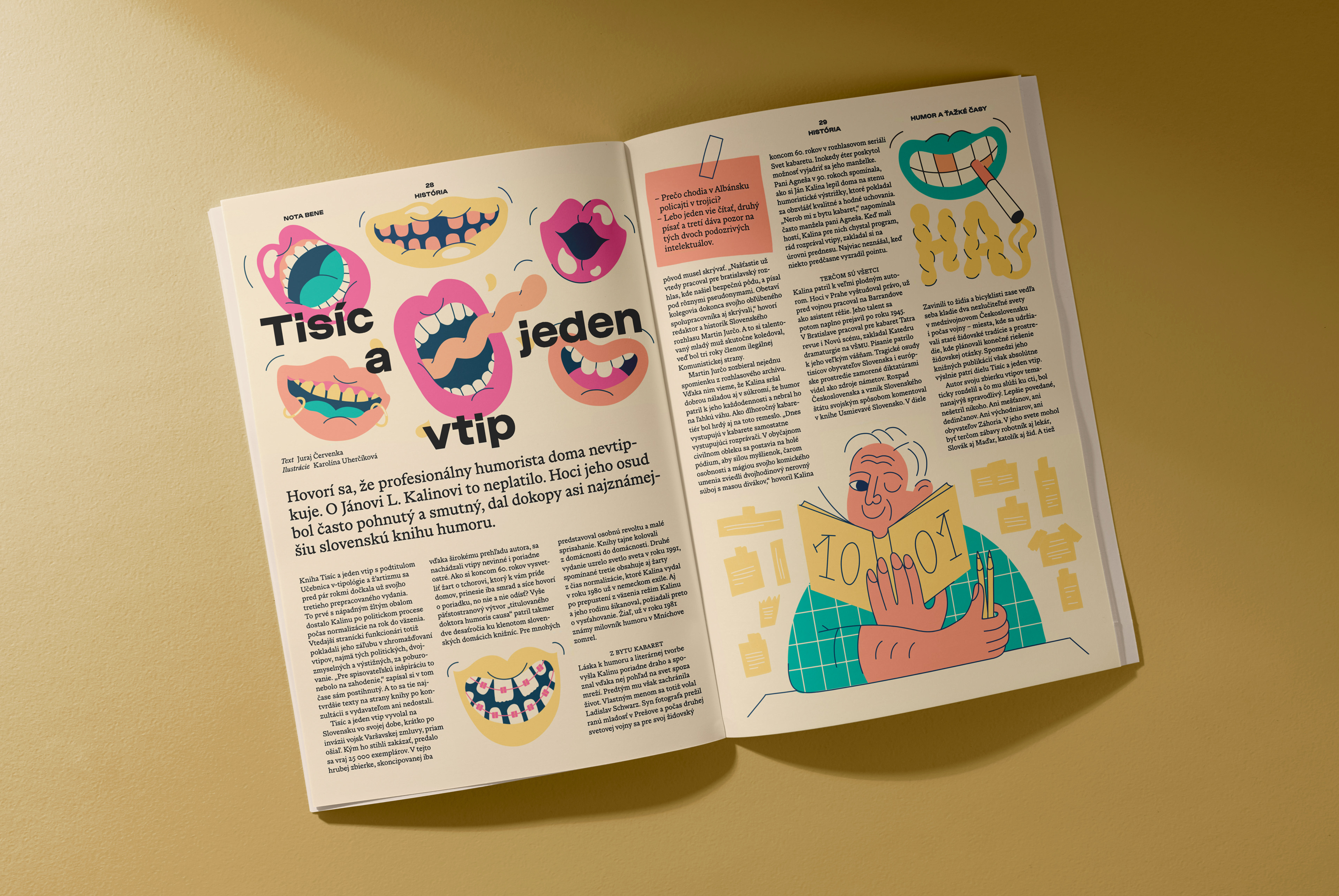 Editorial illustration for an article about Ján Kalina and his famous book A Thousand and One Joke. I really enjoyed this one!