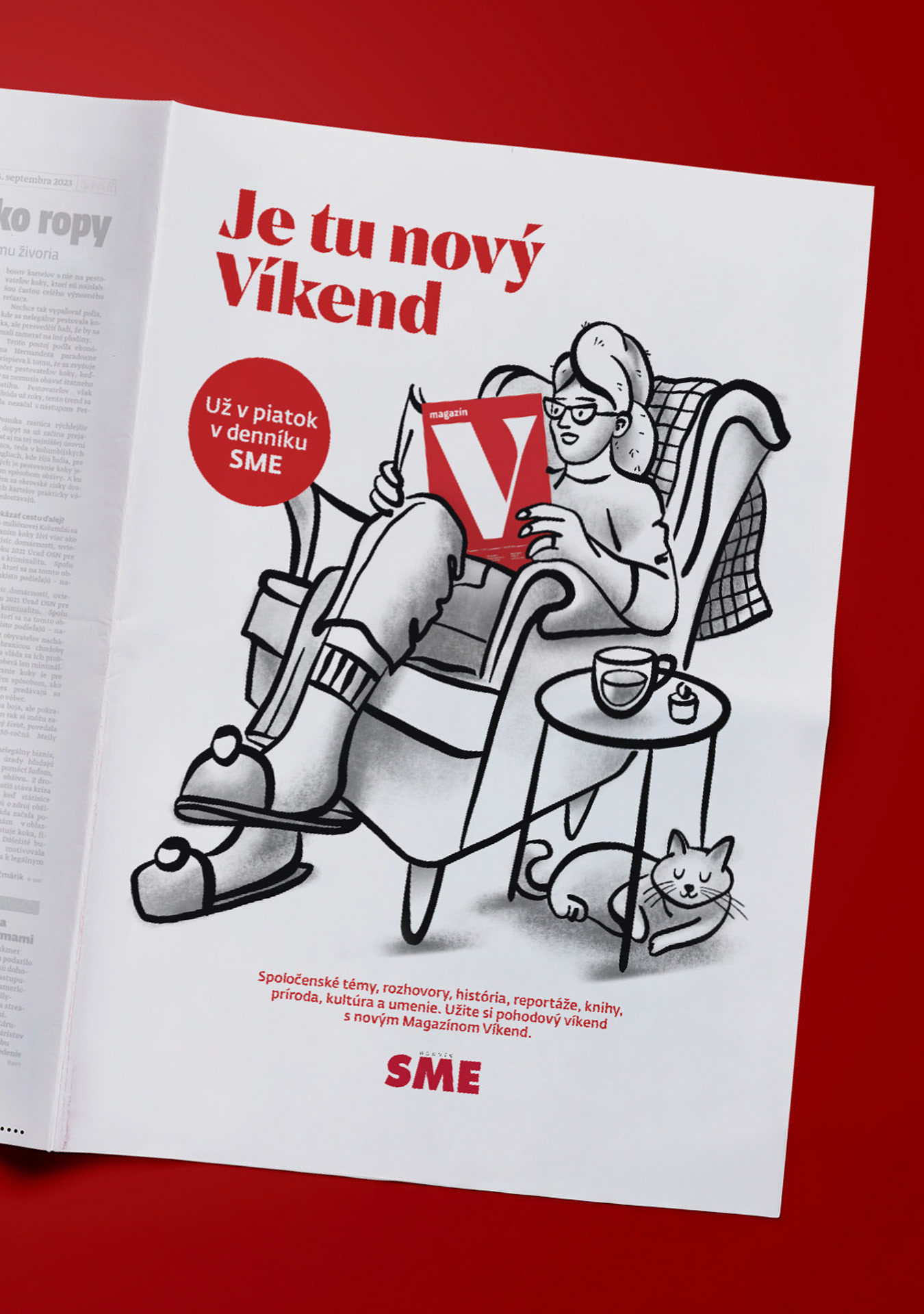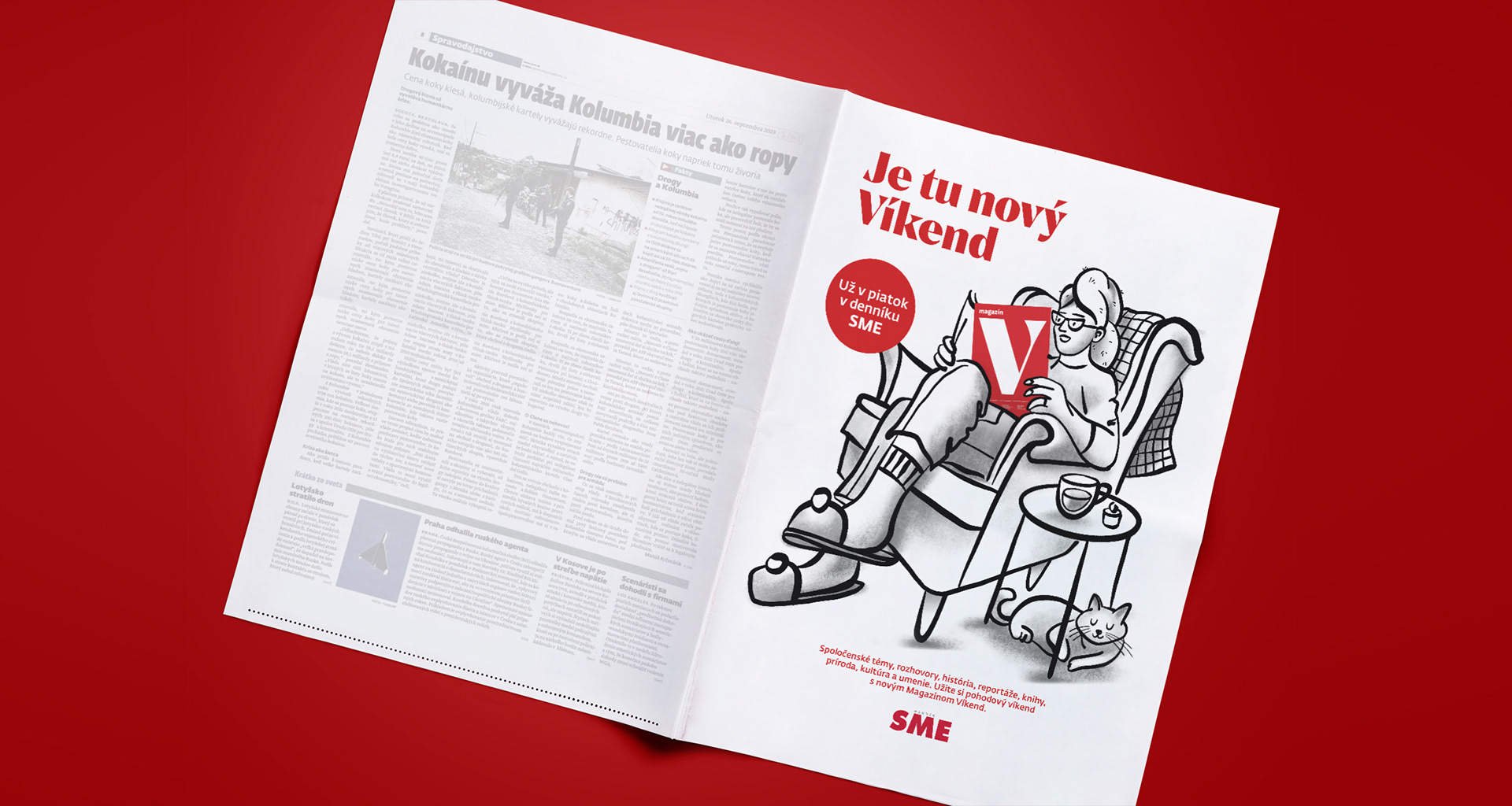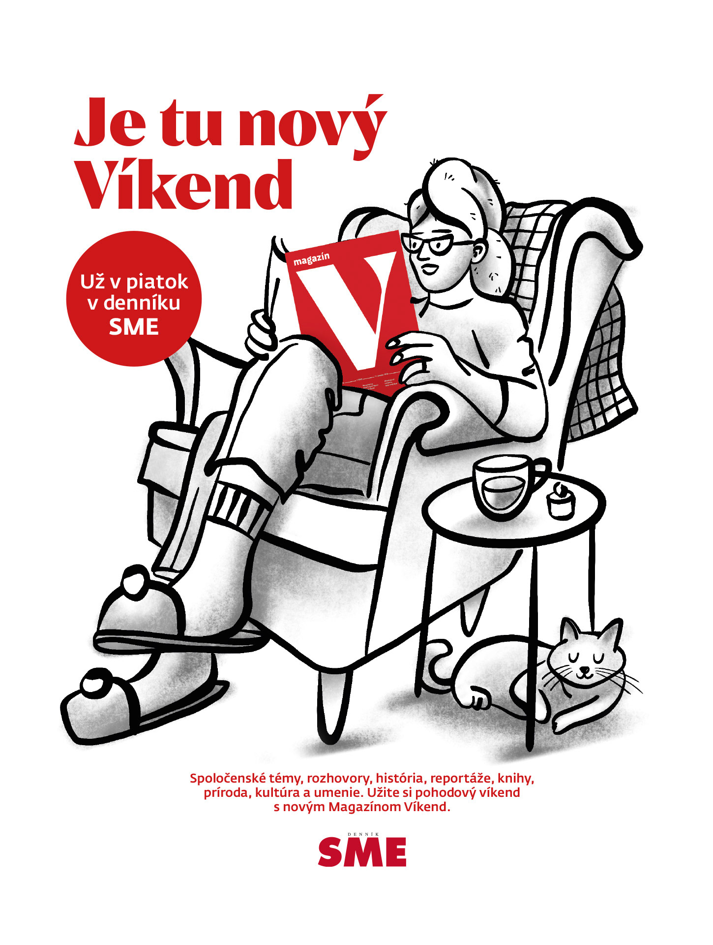 Illustrated campaign for the new magazine, which is meant to bring closer the well-being in the upcoming free days. Magazín Víkend is a printed periodical published every Friday together with the daily SME.