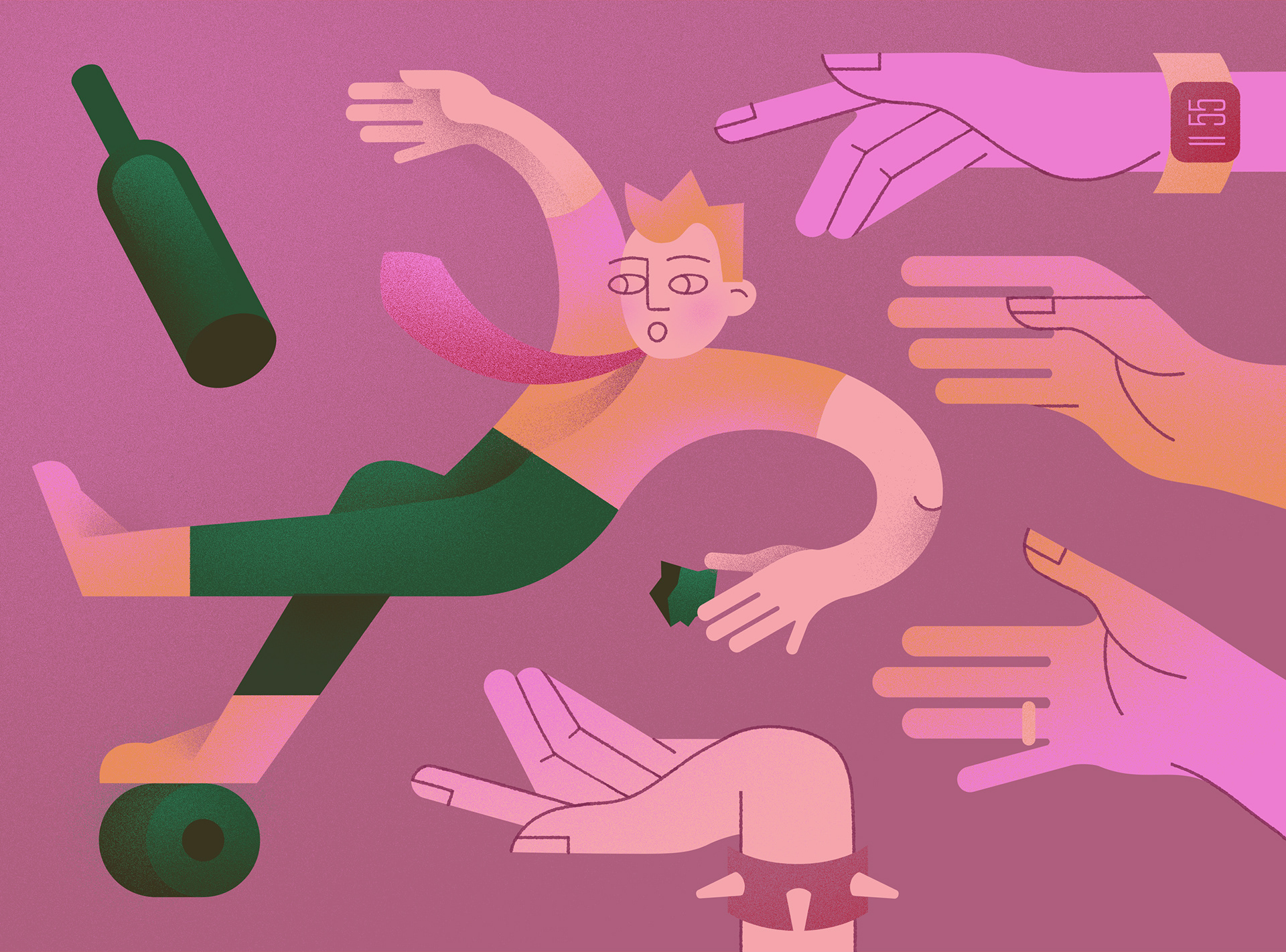 illustration for the January issue of Nota Bene magazine about a difficult but important topic: Al-anon support groups that help family and friends of people addicted to alcohol.